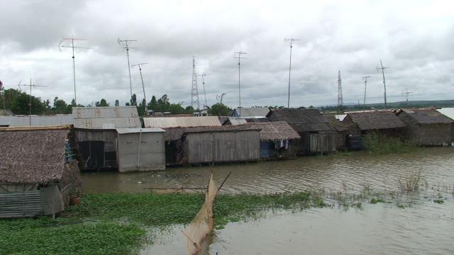 Heute machen wir einen Tagesausflug in die Karstlandschaft der Trockenen Halonbucht. Sie macht ihrem Namen aber keine Ehre. Es war nass und regnerisch, schlimmer noch - ein vorangegangener tropischer Wirbelsturm hat die ganze Landschaft, einschließlich der Wohnhütten, unter Wasser gesetzt. Solche Tragödien ertragen die Vietnamesen augenscheinlich mit stoischer Gelassenheit. Die Trockene Halonbucht ist übrigens nicht zu verwechseln mit der bekannteren Inselwelt der normalen Halonbucht. Zu dieser kommen wir in ein paar Tagen. In früherer Zeit war die Trockene Halonbucht eine vom Meer bedeckte Bucht, in der noch heute große Berge und Felskegel in einer atemberaubenden Szenerie aus den sich weithin ausdehnenden Reisfeldern ragen. Wir machen im strömenden Regen eine Bootstour durch die Bucht. Die Boote dort sind sehr klapprig, aber sie haben wenigstens ein Dach.